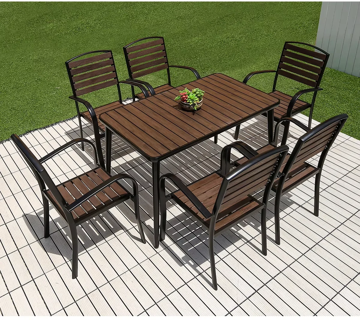 Outdoor Table 120cm Rectangular Tables Metal Backyard Table Garden Hotel Urniture Balcony Terrace Wood-plastic Table