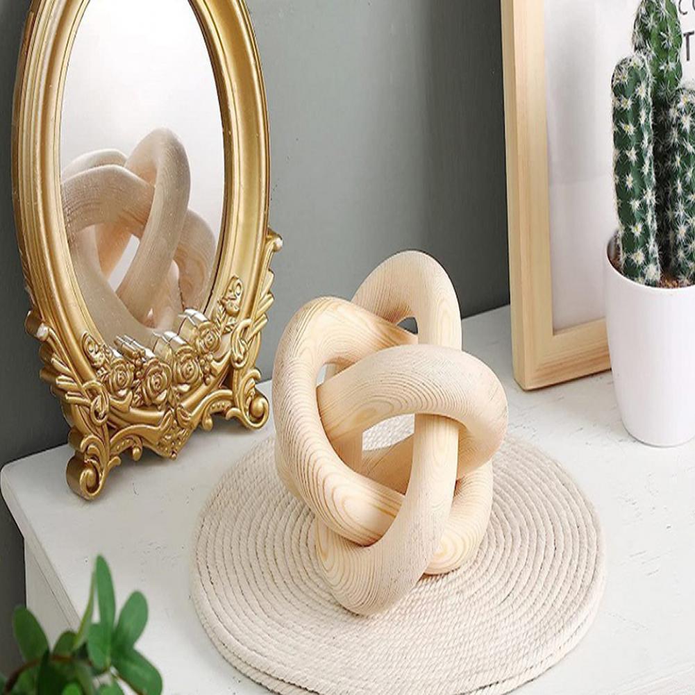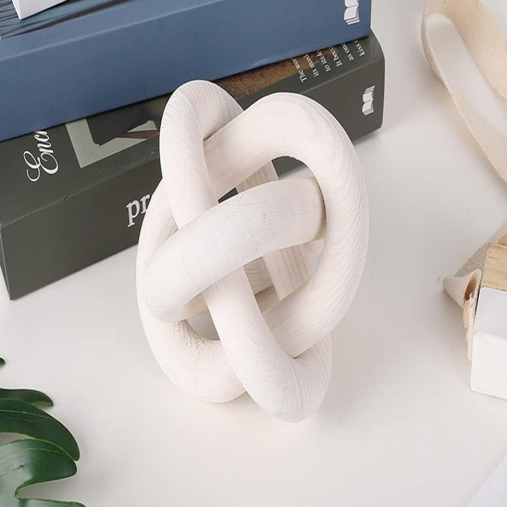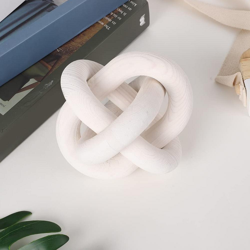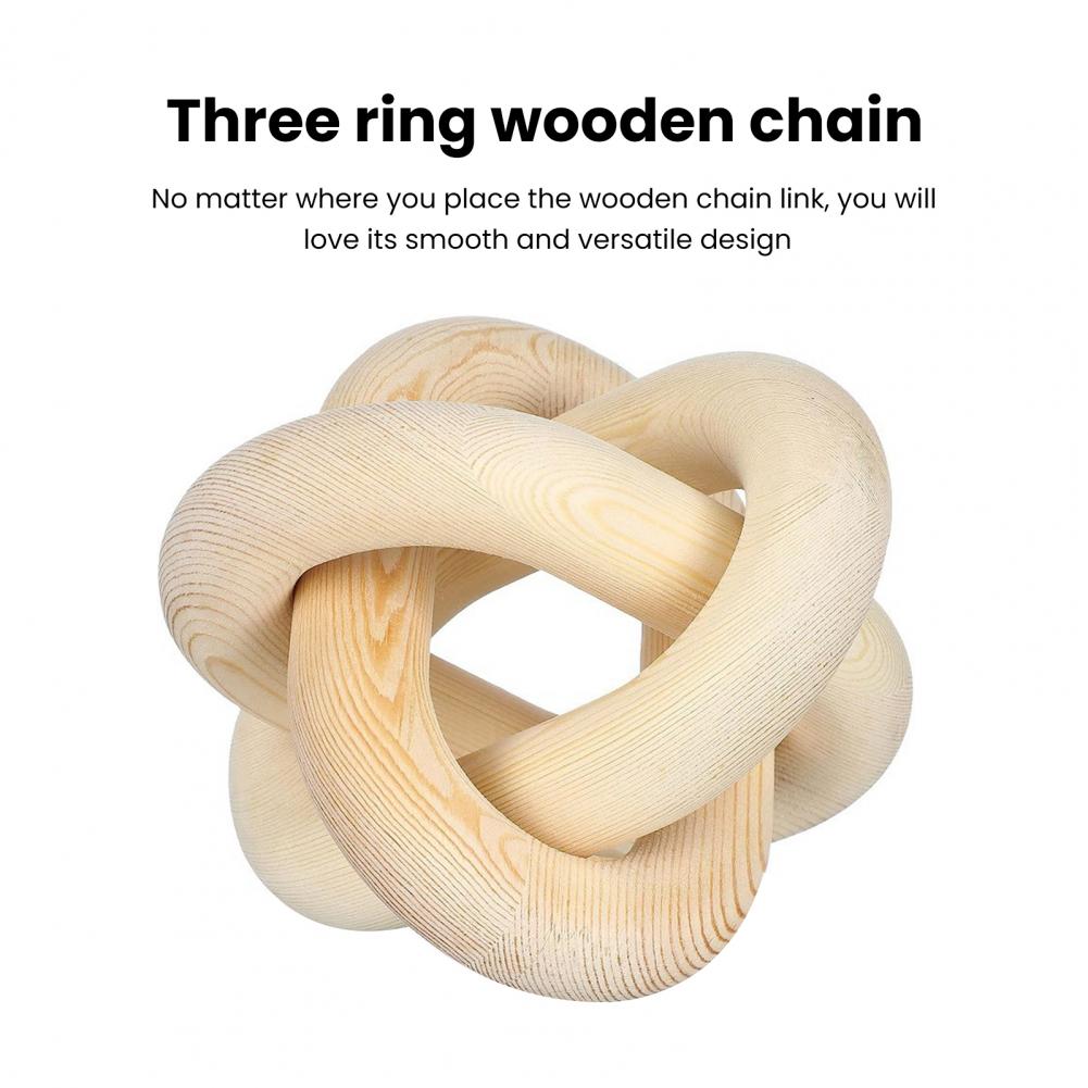 Introducing our wood knot decor, a beautiful and versatile addition to any home decor. Crafted with 3 links, these wooden knots are perfect for accenting shelves, coffee tables, fireplaces, TV stands, dining tables, mantles, bookshelves, nurseries, entry tables, and more. Made of natural pine wood, each decorative chain link is finely hand-carved and features a special white washed craftsmanship. With the unique differences in wood, you will receive a one-of-a-kind wood decor that easily coordinates with other decorative items, adding both texture and warmth to your house. Whether it's for your office, living room, kitchen, study room, dining room, bedroom, or any other space, these wood chain links can be laid flat, stacked or draped to suit your styling preferences. The possibilities are endless! These aesthetic wood chain decor accents also make stunning gifts for housewarmings, weddings, birthdays, holidays and other special occasions. Suitable for family members, friends, partners or any home decor enthusiast in your life. Additionally, the wooden chain link decor is convenient to store without occupying much space. Add a touch of rustic charm to your home with our wood knot decor and elevate the visual appeal of any room.
